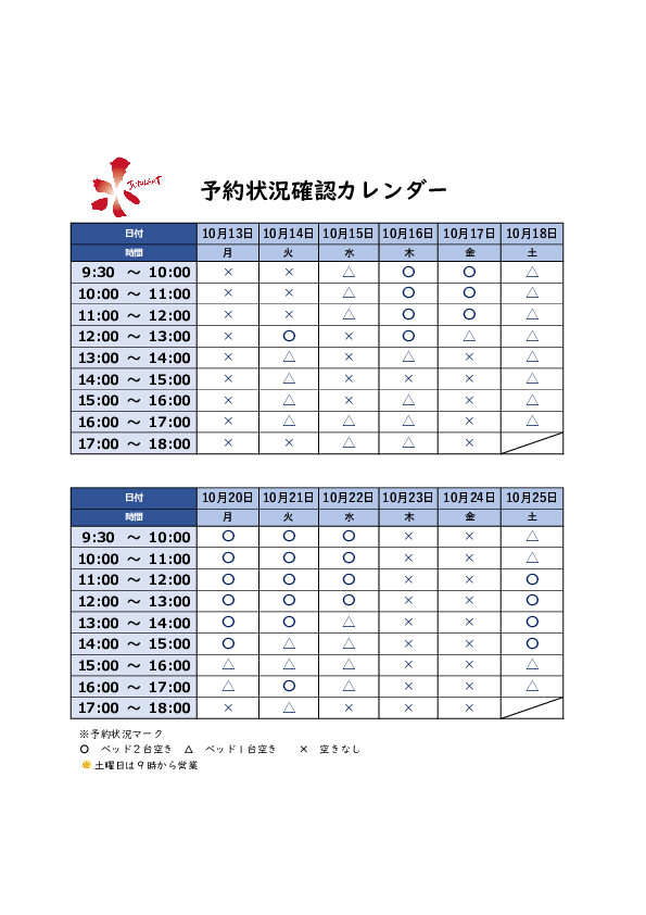 金沢市や野々市市からのアクセスも便利!予約状況カレンダー