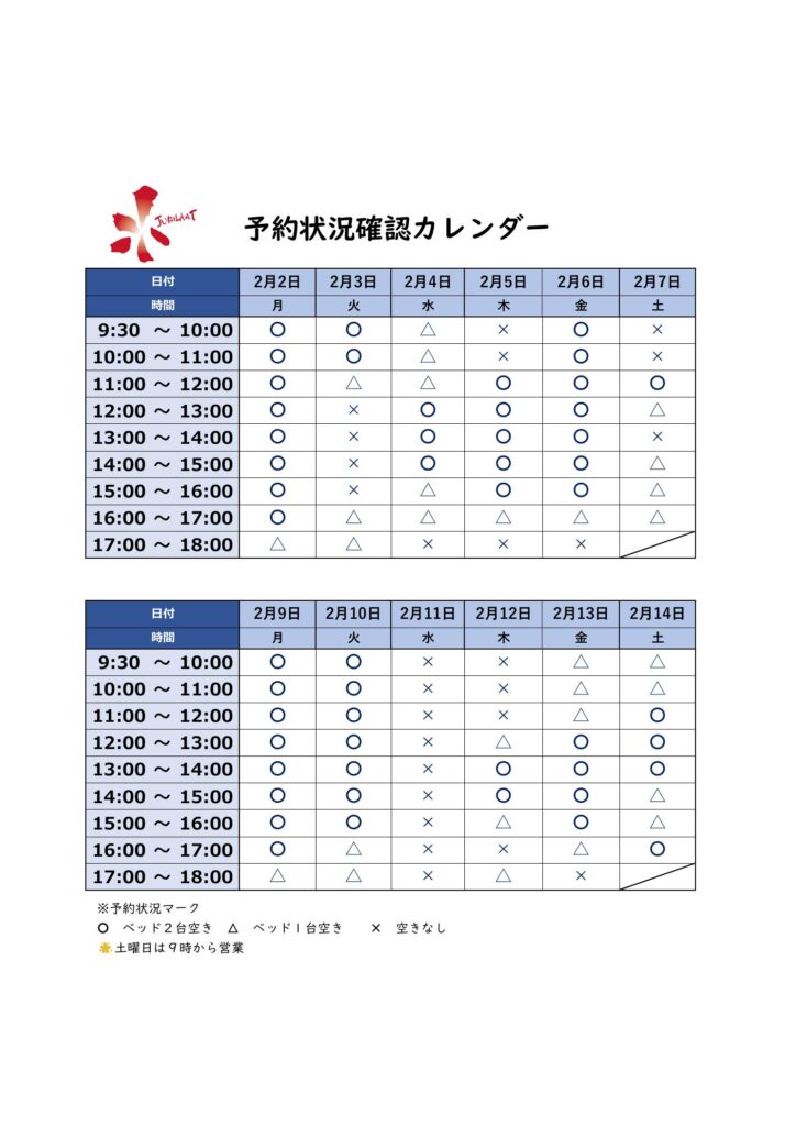 ☆2月のご予約状況(2/2~2/14)☆
